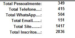 Acima o resumo do total de cotas inscritas para sorteio e o total direcionado por cada canal disponibilizado. Tivemos um aumento considerável nas inscrições feitas pelo site, pela primeira vez, chegamos a 50%. Esse atendimento ao solicitado nos quadrimestres anteriores, deu à Central de Reservas, um fôlego maior para conseguir atender com leveza os demais canais, neste quadrimestre o atendimento fluiu de maneira tranquila. Agradecemos a colaboração.
